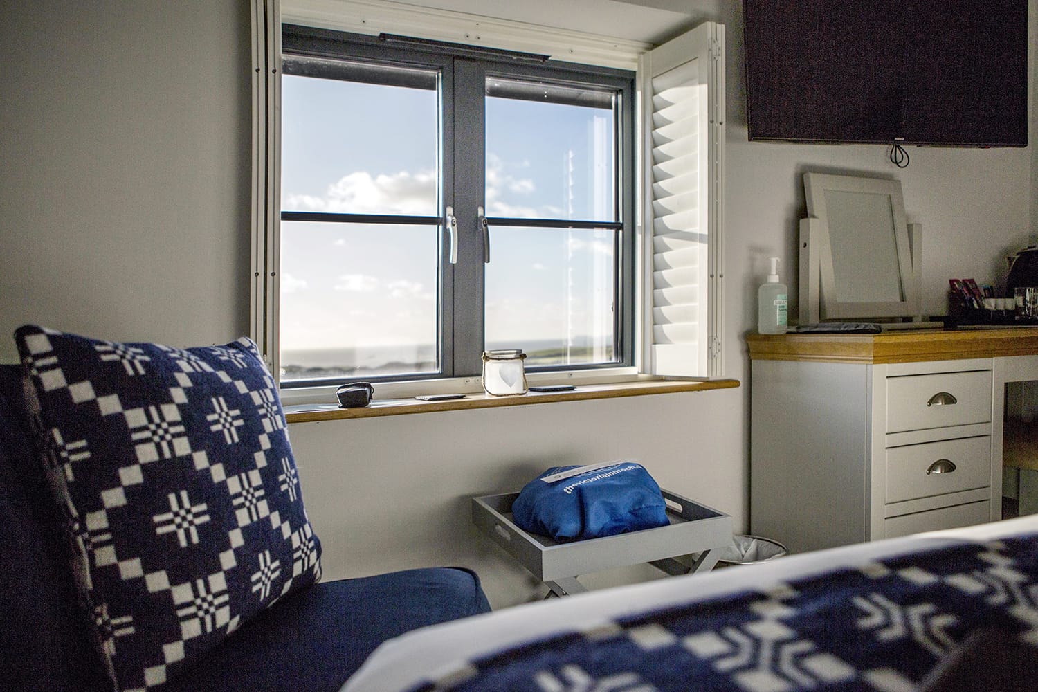 With its sea views towards Newgale Beach and Grassholm Island beyond, this elegant king size, first floor bedroom is the perfect place to relax.